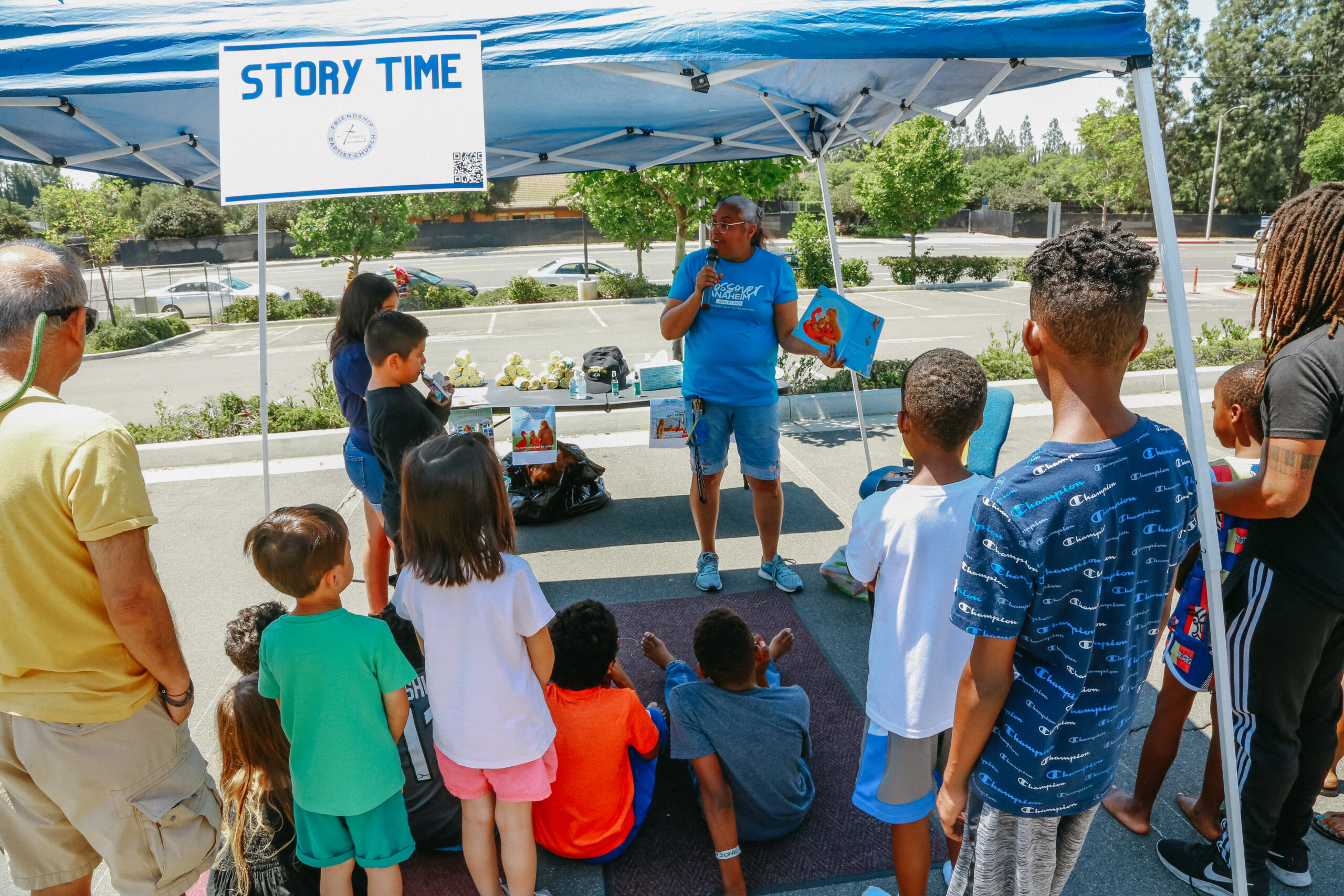 “Today I’m Rikki Taylor, the evangelistic story time reader,” said Taylor, who is on staff at the church. “We pick some really basic books for children to explain what God’s like. A lot of times children have questions about God, and [we help] not just answer that [question] but provoke other questions in their mind to plant that seed with them.”