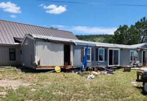Ken and Cindy Collier’s house at the place where it came to rest after floating down the Guadalupe River on July 4. (Photo courtesy of Ken and Cindy Collier)